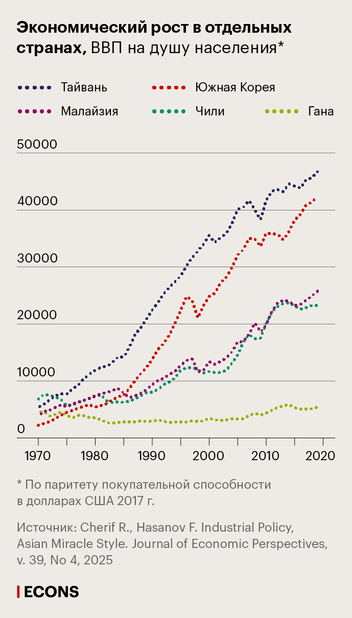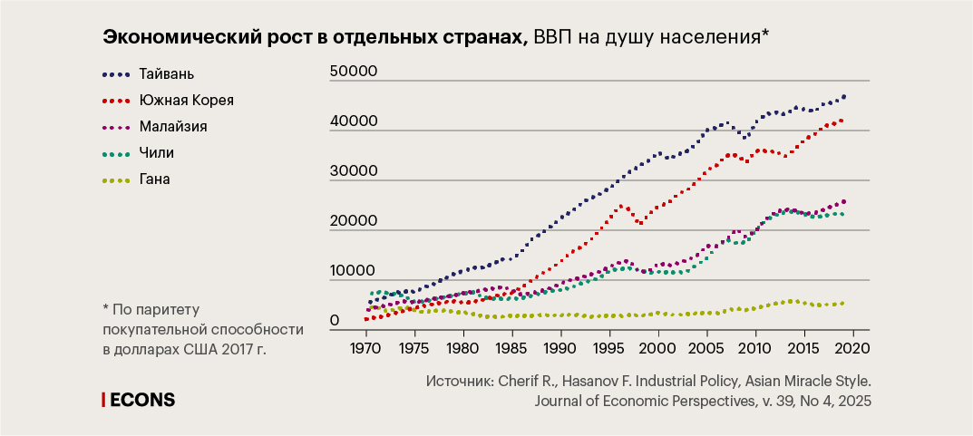Опираясь на работы о промышленной политике «азиатских тигров», Шериф и Хасанов выделили три принципа, которые позволили этим экономикам совершить рывок.