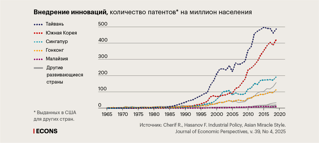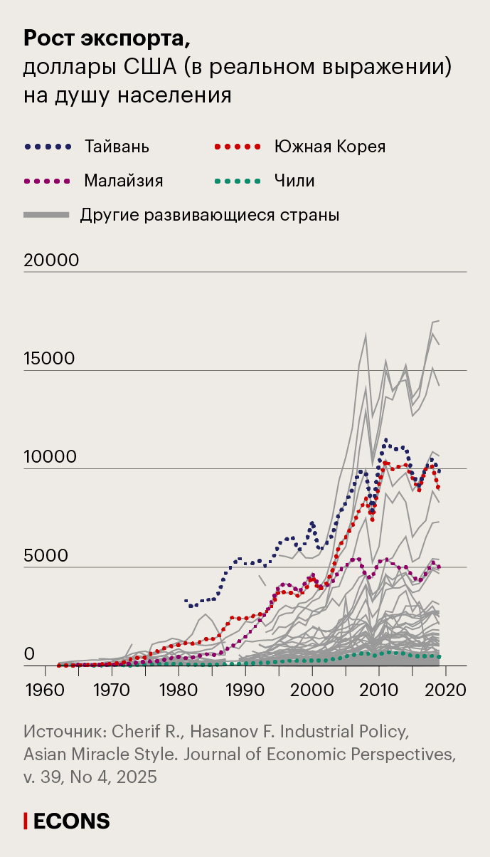 Страны «азиатского чуда» рано начали стимулировать экспорт. Экспорт был главным мерилом успеха и одновременно дисциплинирующим фактором для компаний, заставляя их повышать качество, эффективность и инновационность, чтобы выжить.