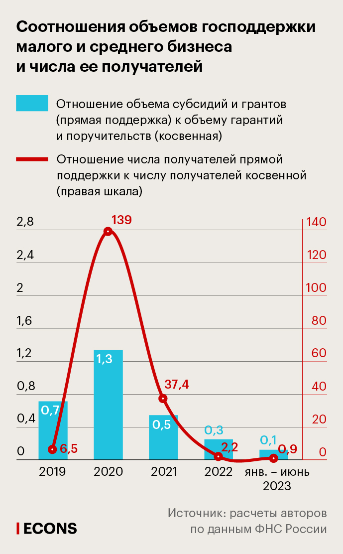 Исследование показало, что в 2020–2021 гг. акцент делался на прямой поддержке – например, субсидиях и грантах. В 2022–2023 гг. он сместился в сторону косвенных инструментов – гарантий и льготного кредитования, которые вместе со снижением регуляторных издержек бизнеса формируют экосистемный подход.