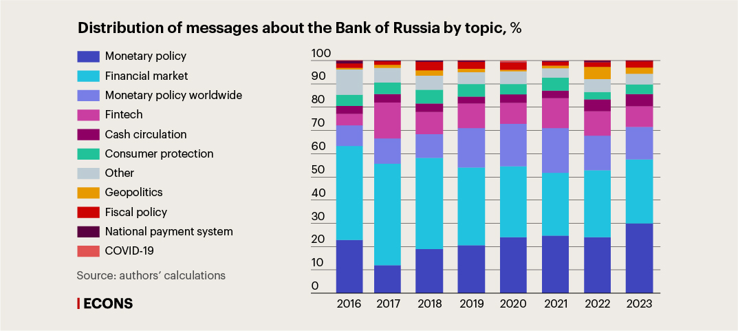 As a result, Telegram has become one of the largest platforms for shaping economic narratives in Russia, giving rise to the phenomenon of the so-called ‘macrotelegram’, as described by Alexey Zabotkin, Deputy Governor of the Bank of Russia, in an open discussion at the New Economic School (NES). ‘Macrotelegram’ is an information space of Telegram channels run by professional academic economists, investment strategists, macroeconomists from investment banks, and brokers. They often take differing positions, thus presenting a wide range of opinions in real time, including with regard to monetary policy. Consequently, the media space around the Bank of Russia is increasingly shaped by social media and opinion leaders.