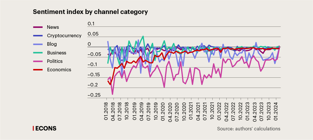 After 2022, the tone of the ‘macrotelegram’ has become more volatile. In general, however, the perception of the Bank of Russia on Telegram improved during the period under review (2018–2024).
