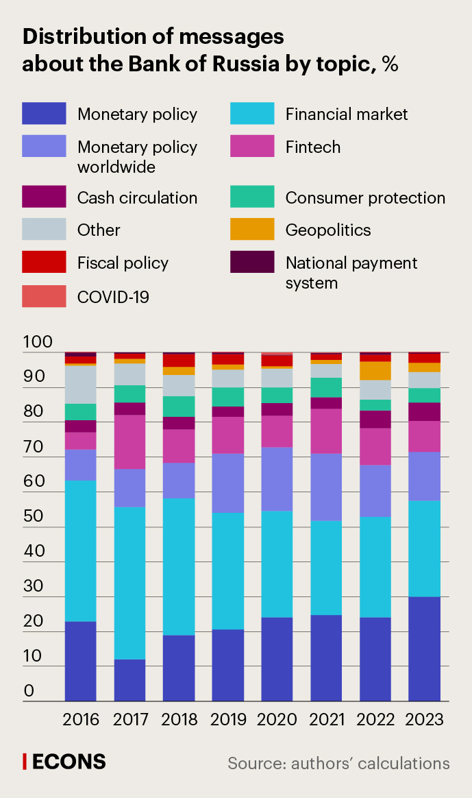 As a result, Telegram has become one of the largest platforms for shaping economic narratives in Russia, giving rise to the phenomenon of the so-called ‘macrotelegram’, as described by Alexey Zabotkin, Deputy Governor of the Bank of Russia, in an open discussion at the New Economic School (NES). ‘Macrotelegram’ is an information space of Telegram channels run by professional academic economists, investment strategists, macroeconomists from investment banks, and brokers. They often take differing positions, thus presenting a wide range of opinions in real time, including with regard to monetary policy. Consequently, the media space around the Bank of Russia is increasingly shaped by social media and opinion leaders.