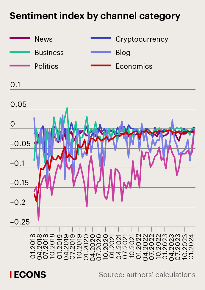 After 2022, the tone of the ‘macrotelegram’ has become more volatile. In general, however, the perception of the Bank of Russia on Telegram improved during the period under review (2018–2024).